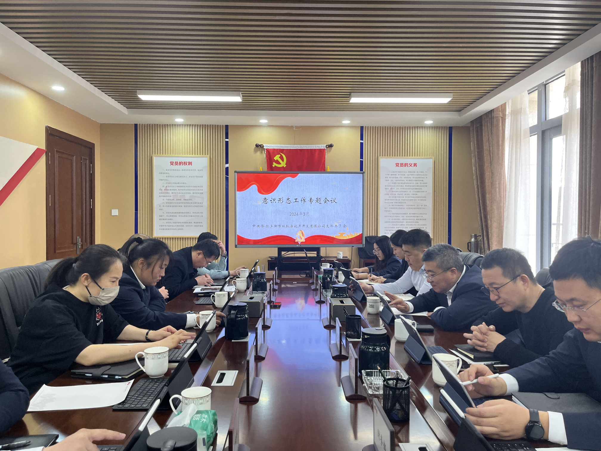 3月1日,城投房地產(chǎn)公司黨支部召開(kāi)意識(shí)形態(tài)工作專題會(huì)議,傳達(dá)學(xué)習(xí)習(xí)近平文化思想、習(xí)近平總書(shū)記關(guān)于網(wǎng)絡(luò)強(qiáng)國(guó)的重要思想、中央企業(yè)宣傳思想文化工作會(huì)議精神,對(duì)城投房地產(chǎn)公司意識(shí)形態(tài)工作進(jìn)行安排部署。黨支部全體黨員,各部門(mén)負(fù)責(zé)人及項(xiàng)目經(jīng)理參加會(huì)議。